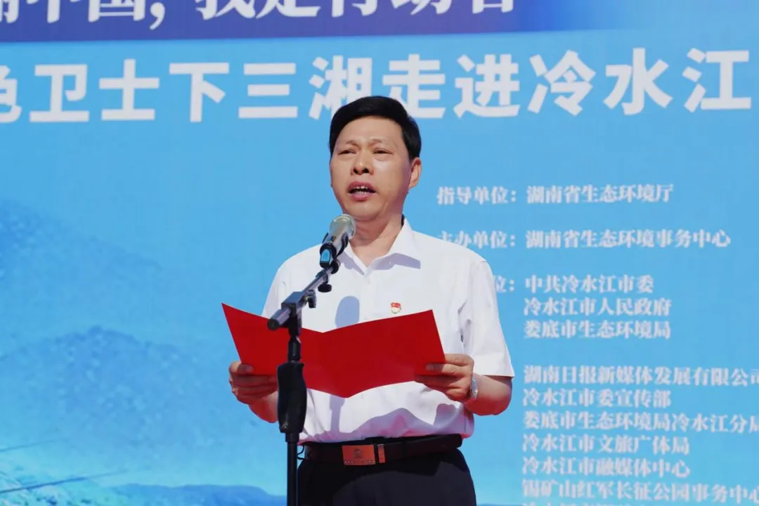 省生態環境廳二級巡視員彭石序,婁底市政協副主席、市生態環境局局長陳惠明,婁底市人民政府副秘書長王汪,冷水江市人民政府副市長劉溫東等省市縣相關單位領導,以及中國花樣游泳名將、世界冠軍的體育湘軍代表李曉璐出席活動。與會嘉賓共同為活動鳴笛發令。