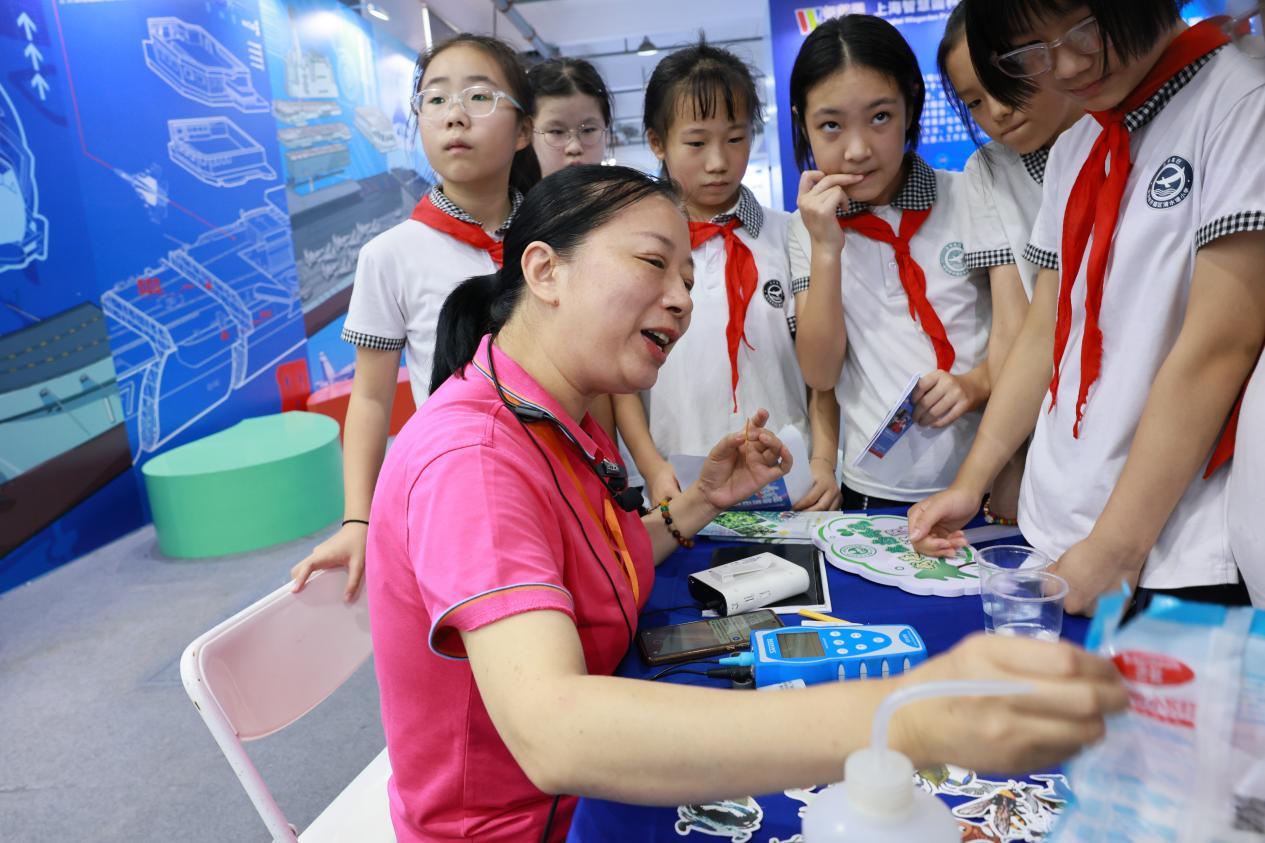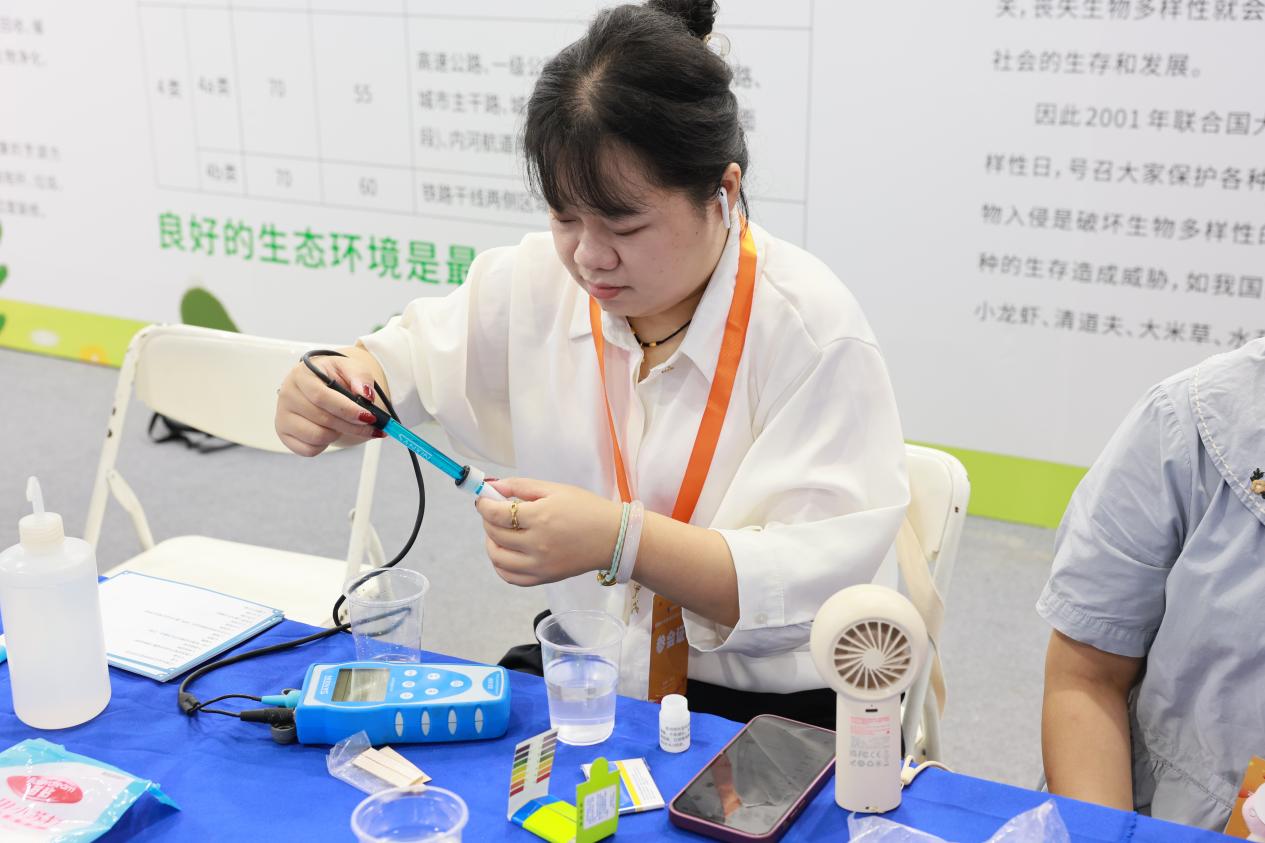 在湖南生態(tài)環(huán)境科普展臺(tái),湖南省生態(tài)環(huán)境監(jiān)測中心站的工作人員“變身”化身環(huán)保老師,給孩子們講起了生態(tài)環(huán)境監(jiān)測的趣事小常識(shí)。讓孩子們知道